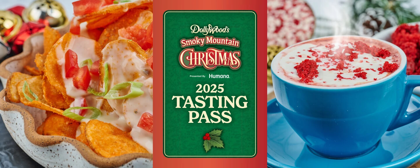 Hearty holiday dishes and seasonal sweet treats are on the menu at Dollywood during Smoky Mountain Christmas presented by Humana. Try up to five festival foods for one low price with a Smoky Mountain Christmas Tasting Pass! Dig into the tastes of the season with savory, stick-to-your-ribs offerings and save room for seasonal treats to ensure your day ends on a sweet note.”