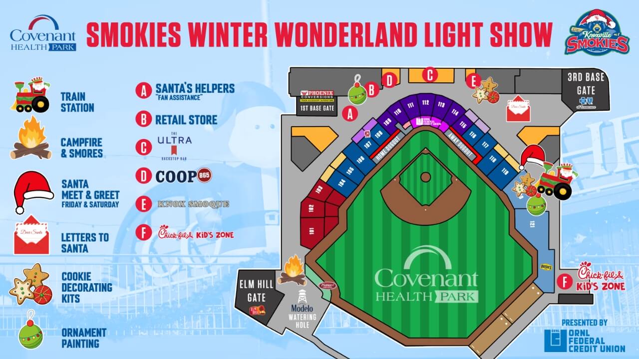 See more on the Smokies Winter Wonderland Light Show, as well as purchase tickets, at https://www.milb.com/knoxville/events/lightshow.